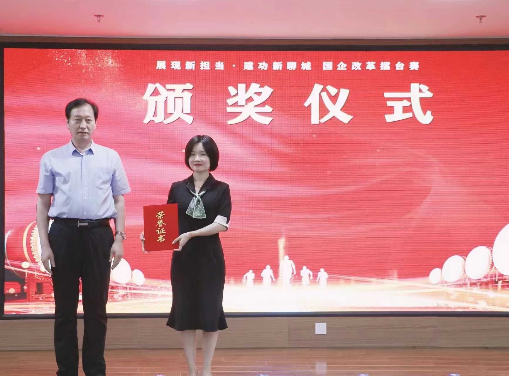 本次財(cái)金集團(tuán)“構(gòu)建戰(zhàn)略人力資源管理體系·助力國企發(fā)展提質(zhì)增效”案例榮獲“展現(xiàn)新?lián)?dāng)·建功新聊城”國企改革擂臺(tái)賽”一等獎(jiǎng),由金同元主任親自頒發(fā)榮譽(yù)證書。