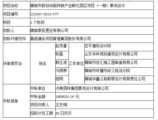 聊城市新舊動能轉(zhuǎn)換產(chǎn)業(yè)孵化園區(qū)項目(一期)景觀設(shè)計中標(biāo)公示